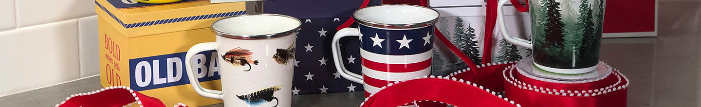 Enamelware mugs make a unique gift with a matching gift box to make the perfect treat for teachers, holidays, and birthdays. Whether you are enjoying hot or cold beverages, these mugs make a memorable impact on any occasion. An enamelware gift mug with one of our detailed and unique designs will be the perfect addition to a home, kitchen or special celebration. Their durability and quality will ensure they stay looking brand new for a lifetime to come. Please select from our collection below.