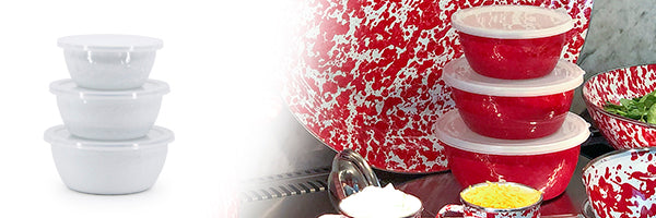 Add a bold touch of red to your kitchen with the Red Swirl Nesting Bowls. These enamelware bowls feature vibrant...