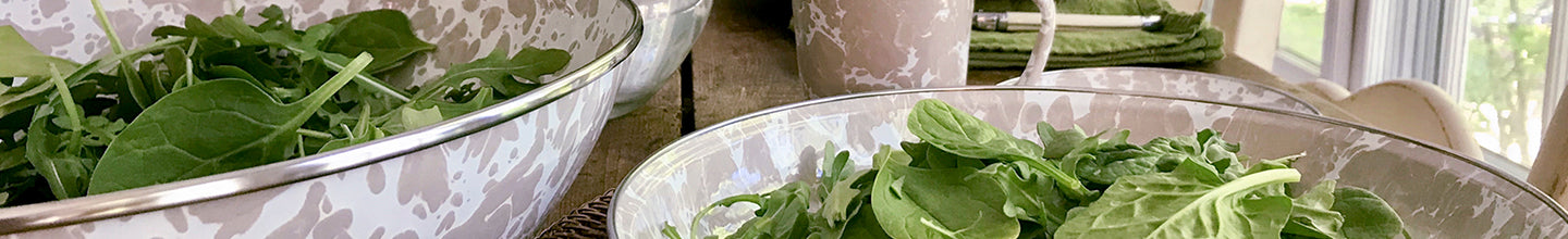 The Taupe Swirl Nesting Bowls offer a subtle, neutral design with soft taupe swirls. These enamelware bowls are ideal for...