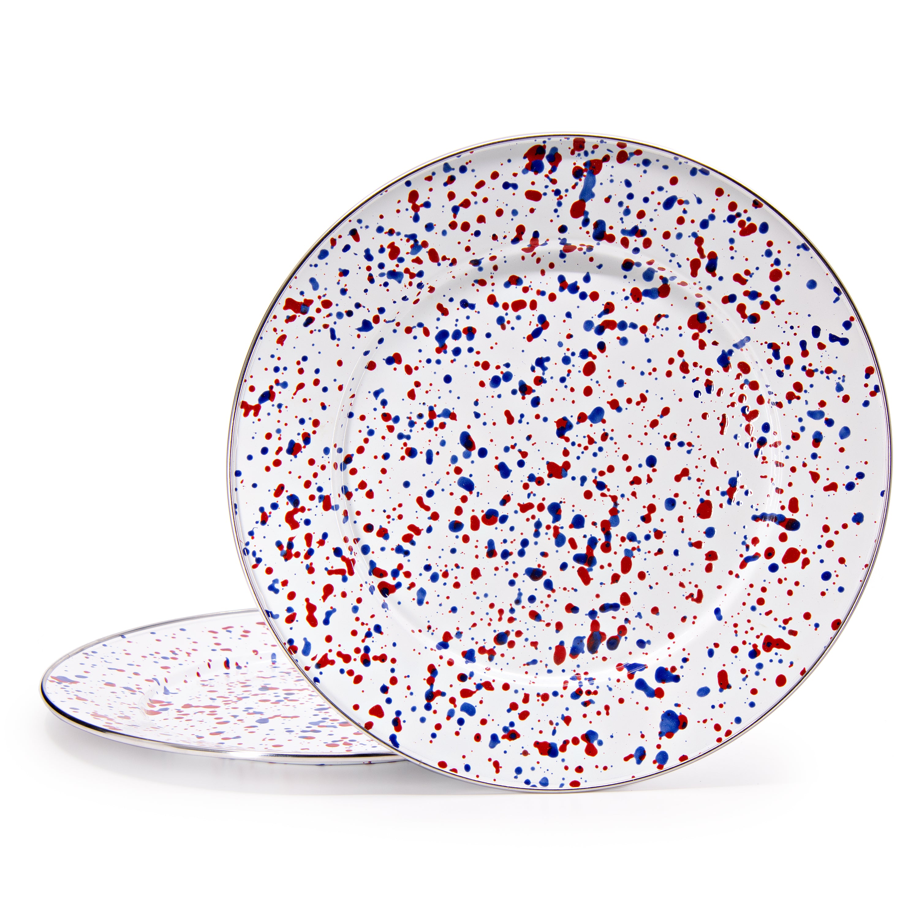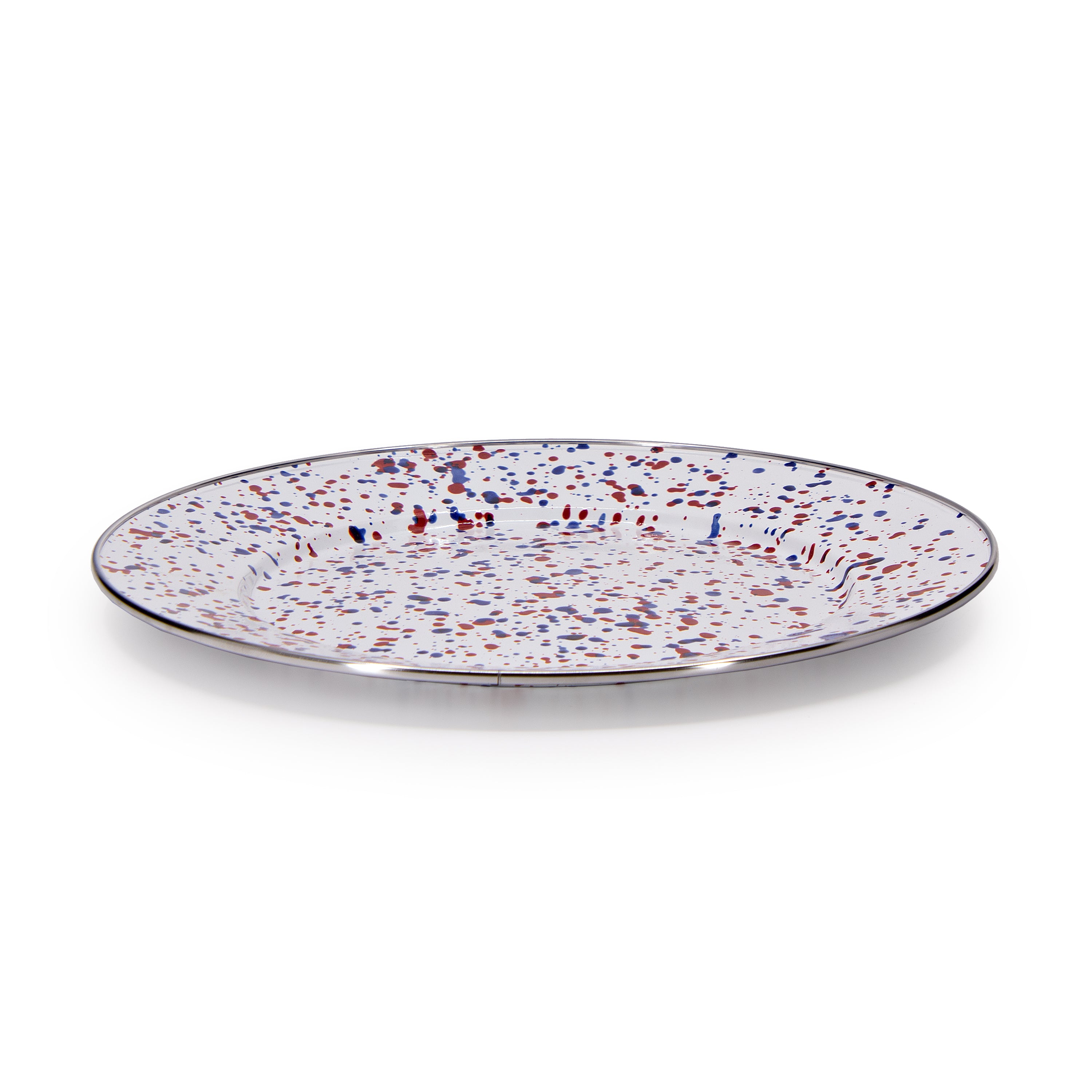Bring timeless charm to your table with the Americana pattern. Crafted from durable enamelware, this design features classic blue and red flecks on a crisp white background, evoking vintage Americana style. Perfect for picnics, barbecues, and family gatherings, it adds a patriotic flair to everyday dining.