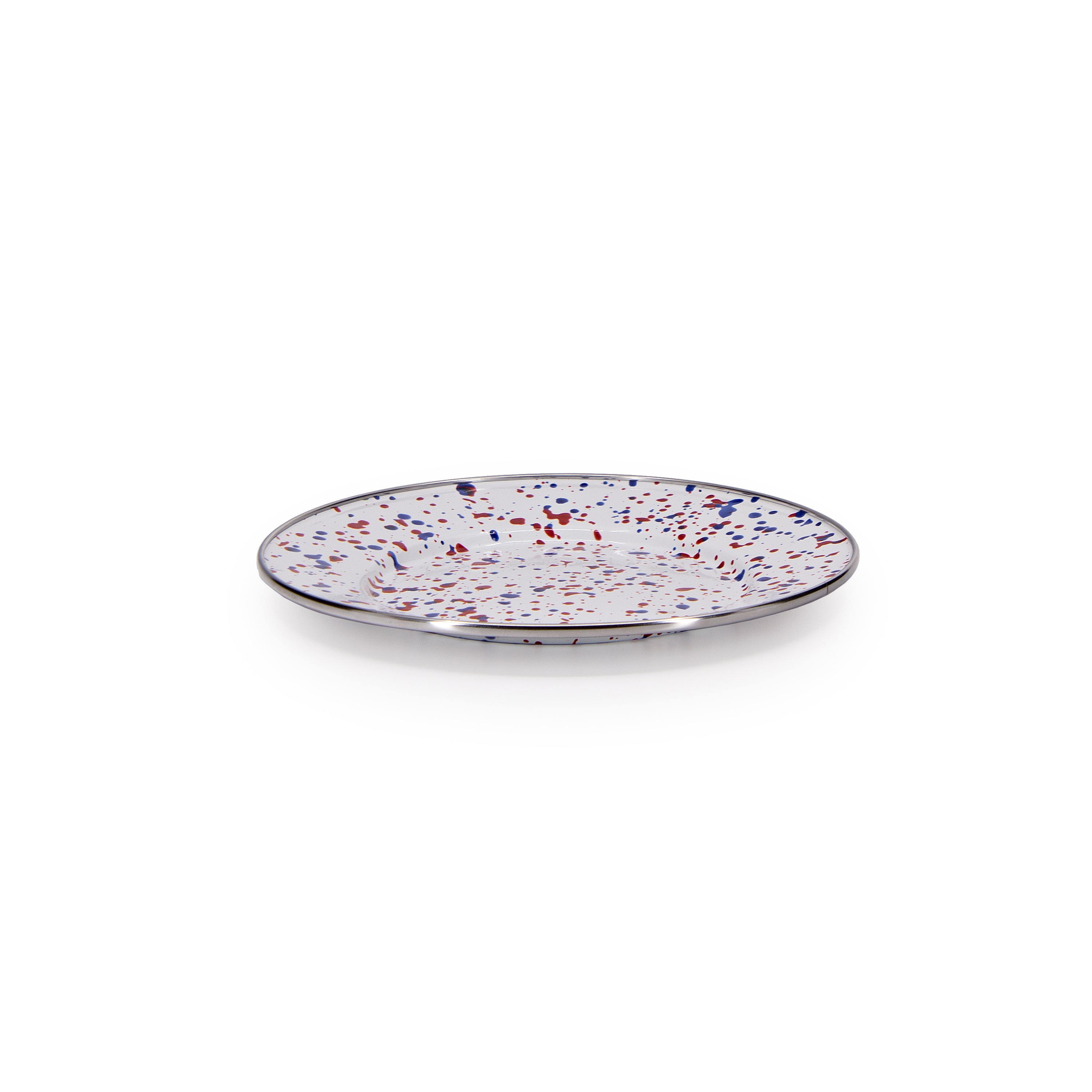 Bring timeless charm to your table with the Americana pattern. Crafted from durable enamelware, this design features classic blue and red flecks on a crisp white background, evoking vintage Americana style. Perfect for picnics, barbecues, and family gatherings, it adds a patriotic flair to everyday dining.